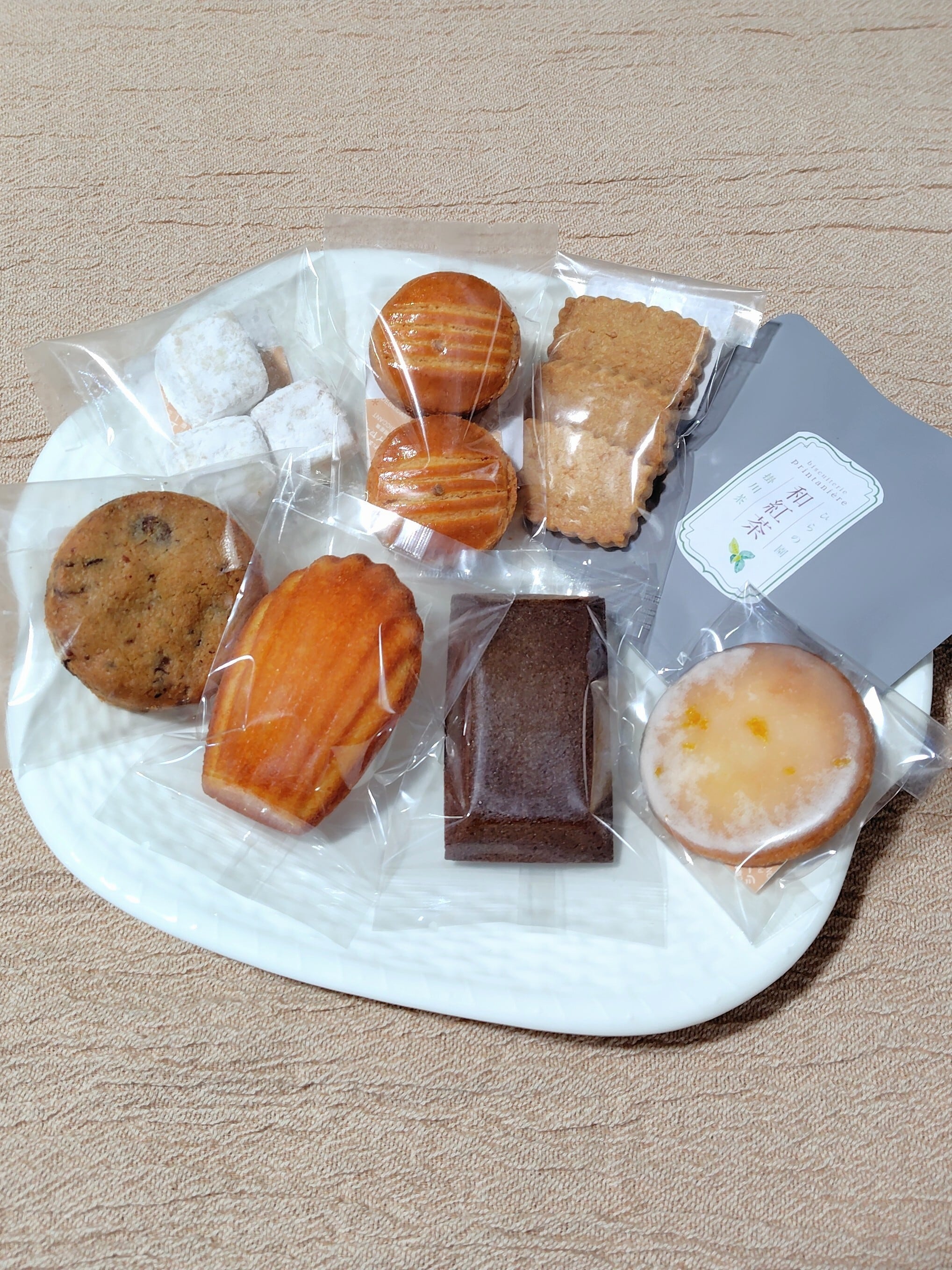 【原材料名】小麦粉(北海道産)、バター、ビートグラニュー糖、つくば市産平飼い卵、アーモンド、はちみつ、サワークリーム、深蒸し茶パウダー、水あめ、シナモン、ジンジャー、国産ゆず、国産レモン、ゲランドの塩/ベーキングパウダー
